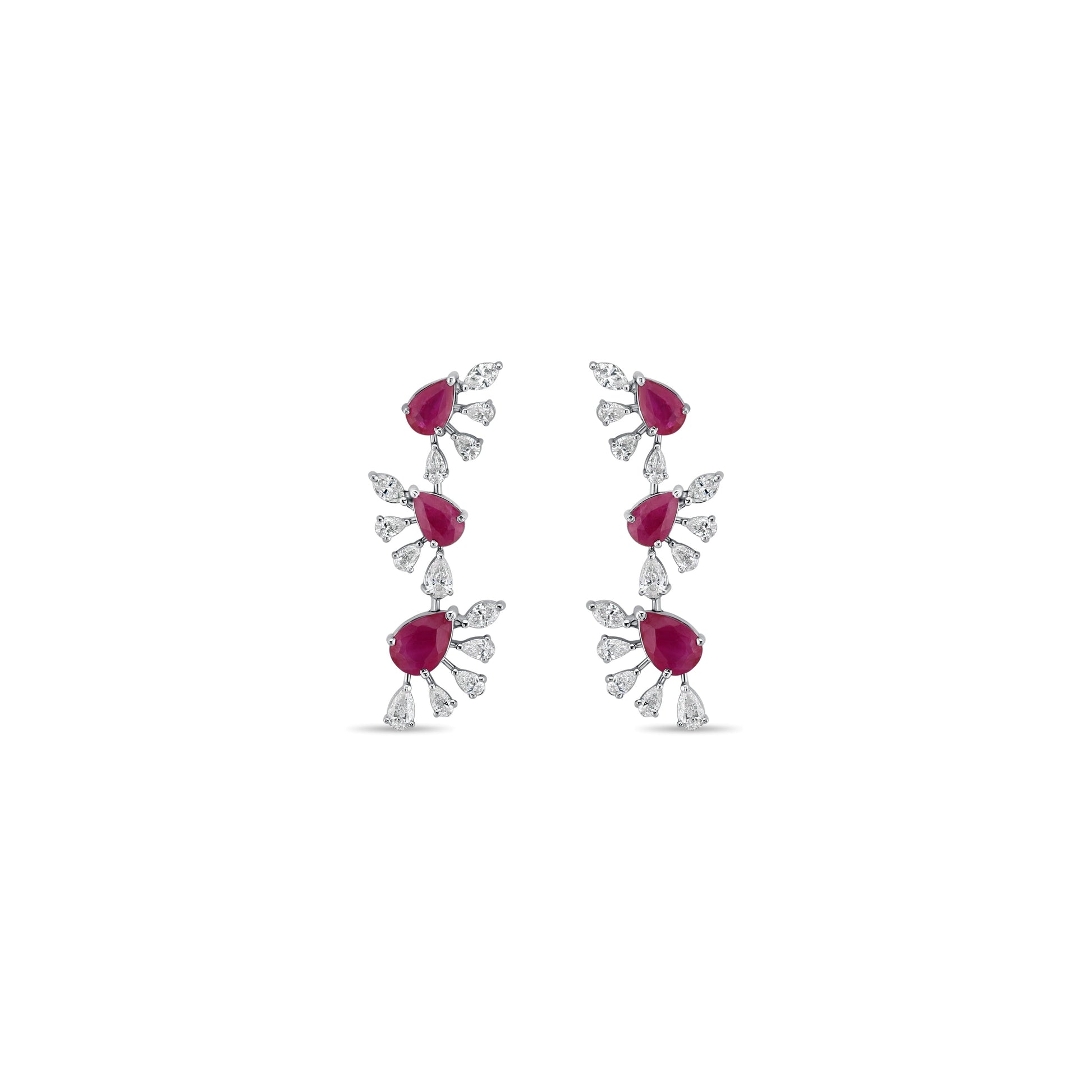 The Venoriah Ruby White Gold Earring radiates timeless sophistication, crafted in polished white gold and accented with the deep, captivating red of ruby. Its elegant design blends classic refinement with modern grace, making it a versatile jewel for both everyday elegance and special occasions.